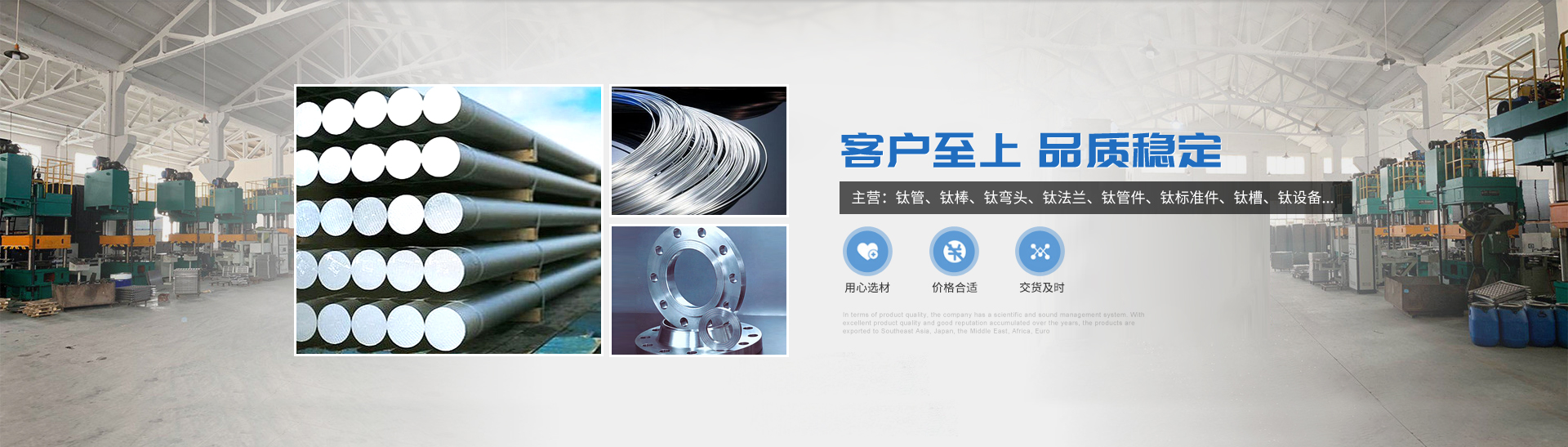 本公司的主營產(chǎn)品鈦制品有,鈦管,鈦棒,鈦彎頭,鈦法蘭,鈦管件,鈦標準件,鈦槽,鈦設備,鈦沖壓彎頭等。所生產(chǎn)各種規(guī)格的鈦制品主要運用于化工、電鍍、石油、電子、環(huán)保、海洋等領域"以質(zhì)量求生存,靠服務求發(fā)展“為宗旨,客戶的滿意是我們的追求,歡迎各界用戶來函來電,傳真,洽談貿(mào)易。